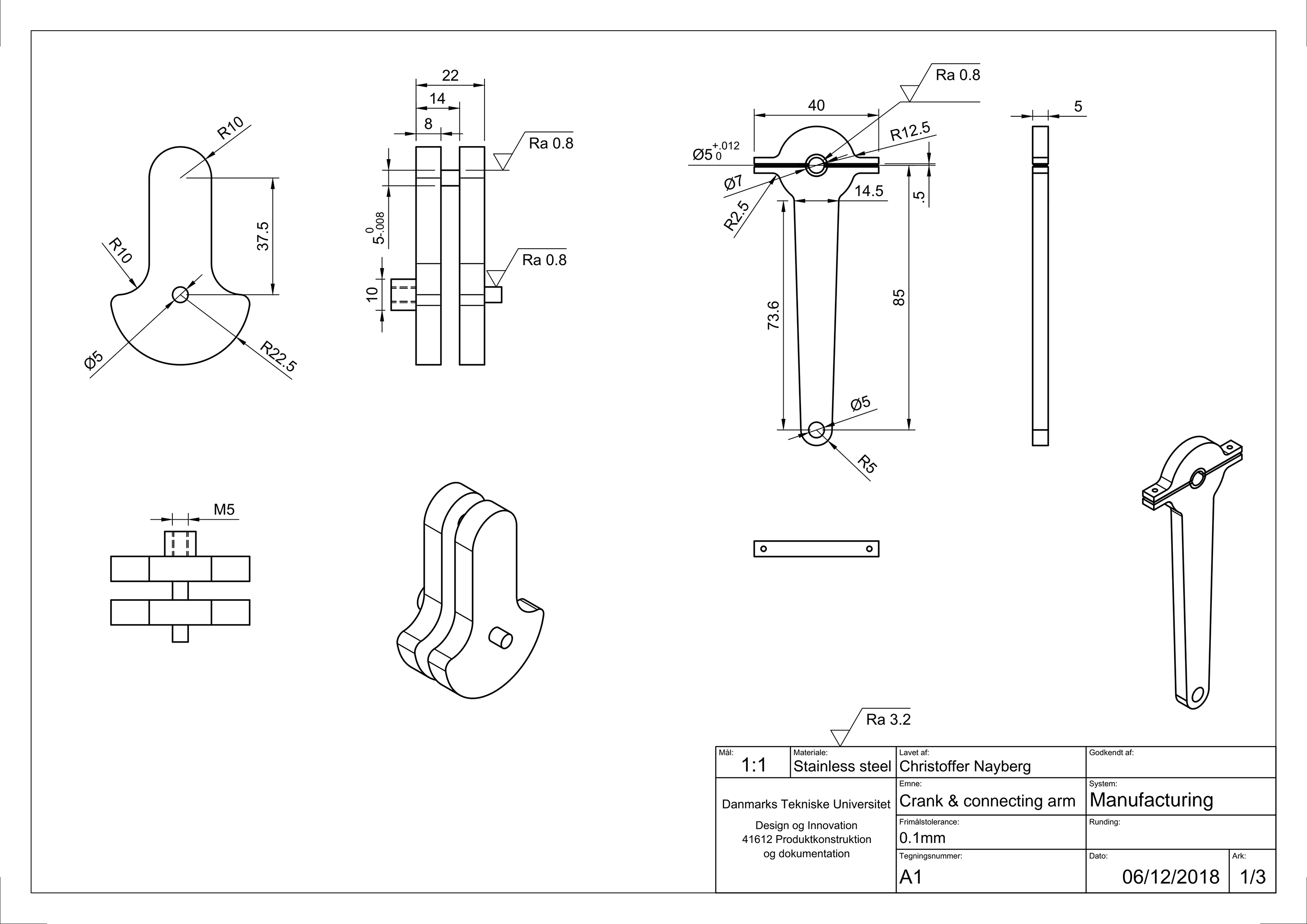 Considering the relatively low expected yearly production number, standard parts and simple manufacturing processes were deemed preferable, and focusing on minimizing the use of materials was deemed less important than durability.