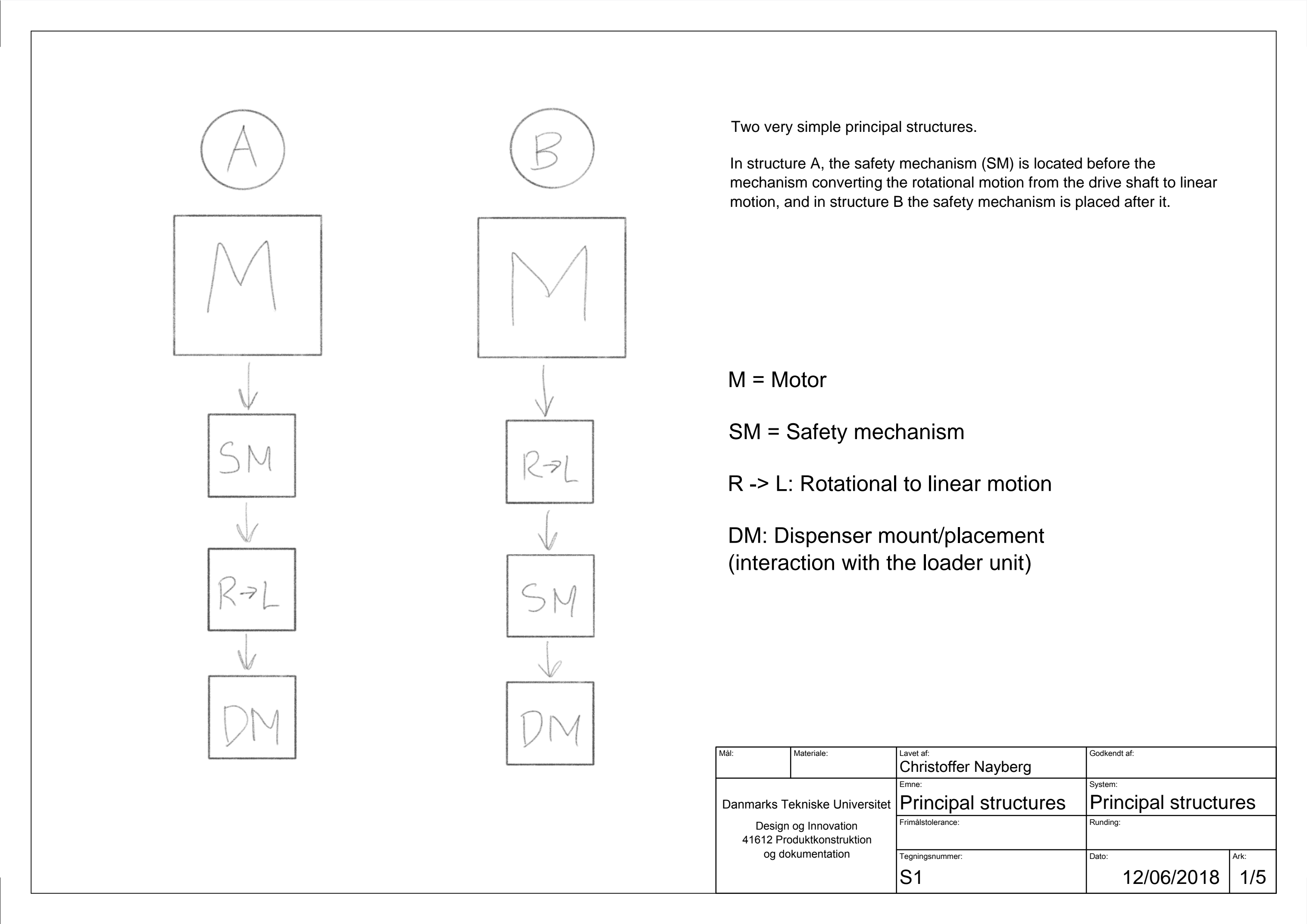 Two simple principal functional structures were drawn, and for each function, a number of alternative possible solutions were considered.